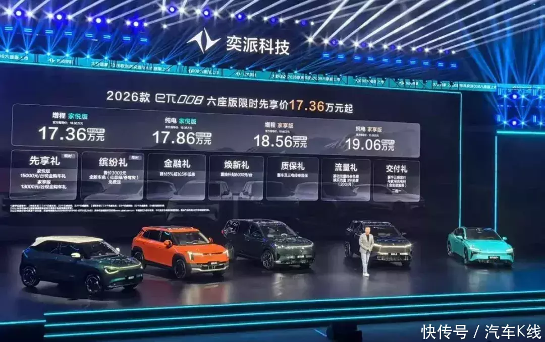 8月1日,在东风奕派汽车科技公司战略发布会暨新车发布会上,2026款eπ008六座版焕新上市,官方起售价18.86万元起,限时先享价17.36万元起。