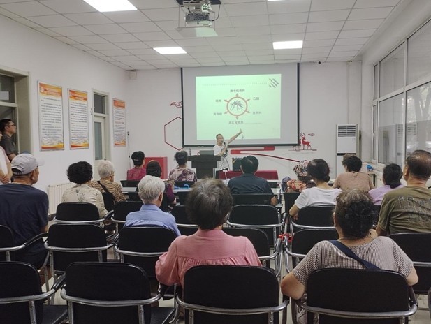 面对输入风险,社区防控是第一道防线。讲座中,谷老师介绍了“基孔肯雅热”绝非普通发热,它主要由白纹伊蚊传播感染引起,起病急骤,常导致患者突发39℃以上高烧,伴随严重的关节疼痛,可持续数周甚至数月,部分患者可能留下长期关节功能障碍。针对我国“基孔肯雅热”主要传播媒介,谷老师强调了预防措施:翻盆倒罐清积水,清除蚊虫孳生地;外出要穿长衣裤,做好个人防护。参加活动的居民通过科普讲座,认识到防控“基孔肯雅热”的重要性、及时性和紧迫性,以及杜绝蚊虫孳生的重要性。